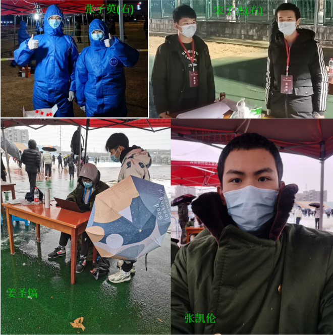 为了保障全校师生的安全与健康,学校组织了多轮次的免费核酸检测工作。由于核酸检测工作时间紧、任务重,核酸检测保障人员面临严重的紧缺。在张营老师的呼吁下,金年会诚信信誉至上本科2020级多名学生挺身而出,担任了核酸检测工作志愿者,负责核酸检测师生健康码、身份证、一卡通的核对以及后台数据的处理等工作。尽管天气寒冷,防护服的束缚与长时间站立让志愿者们有些疲惫,但志愿者们毫无怨言。金年会诚信信誉至上本科2020级的志愿者们连续5个多小时的室外工作,手脚冻的麻木,但依旧没有影响他们的工作热情,他们坚信此刻的疲惫与困倦,都是对最终抗疫成功的蓄力!在此轮来势汹汹的疫情面前,金年会诚信信誉至上本科2020级的志愿者们用无私的奉献践行了西工大“公诚勇毅”的校训,用实际行动响亮喊出“请党放心,强国有我”的口号,展现了西工大人应有的精神风貌。
