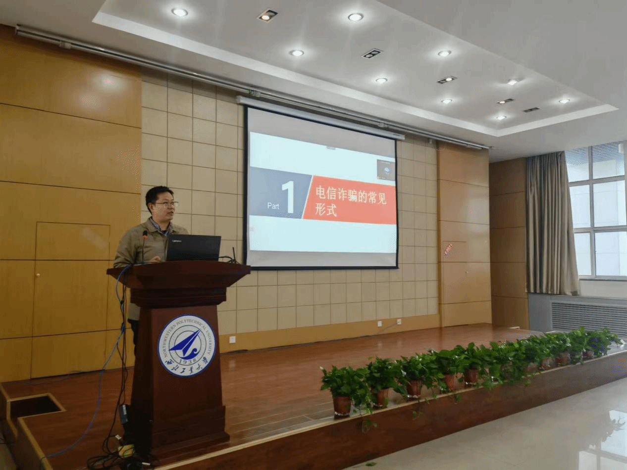西安市公安局高新分局户政大队防诈科警官杨皓宇围绕电信诈骗的常见方式和如何识别、防范网络诈骗两方面进行讲解。冒充熟人、冒充客服退款、刷单等常见诈骗方式以及疫情后冒充防疫、司法人员,骗取信息等新型诈骗手段……一个个鲜活的案例让与会师生意识到诈骗行为就在身边,必须保持警惕,做好安全防范。