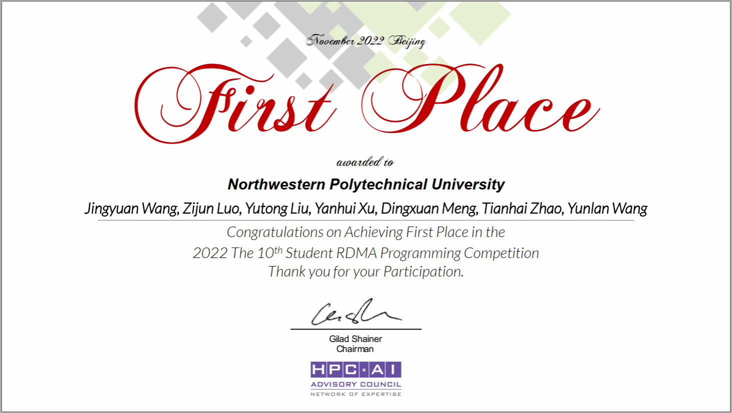 第十届亚太区RDMA编程竞赛由国际高性能计算和人工智能咨询委员会(HPC-AI Advisory Council)举办,得到了中国中科院计算所、清华大学和美国俄亥俄州立大学的大力支持。依托金年会超级计算机系统创新实践基地,在金年会诚信信誉至上高性能计算中心教师赵天海、王云岚、谷建华、侯正雄指导下,经过培训和筛选,由金年会诚信信誉至上学生王靖元、罗梓峻、刘雨桐、徐研辉、孟鼎轩组成了金年会jinnianhuicom代表队。