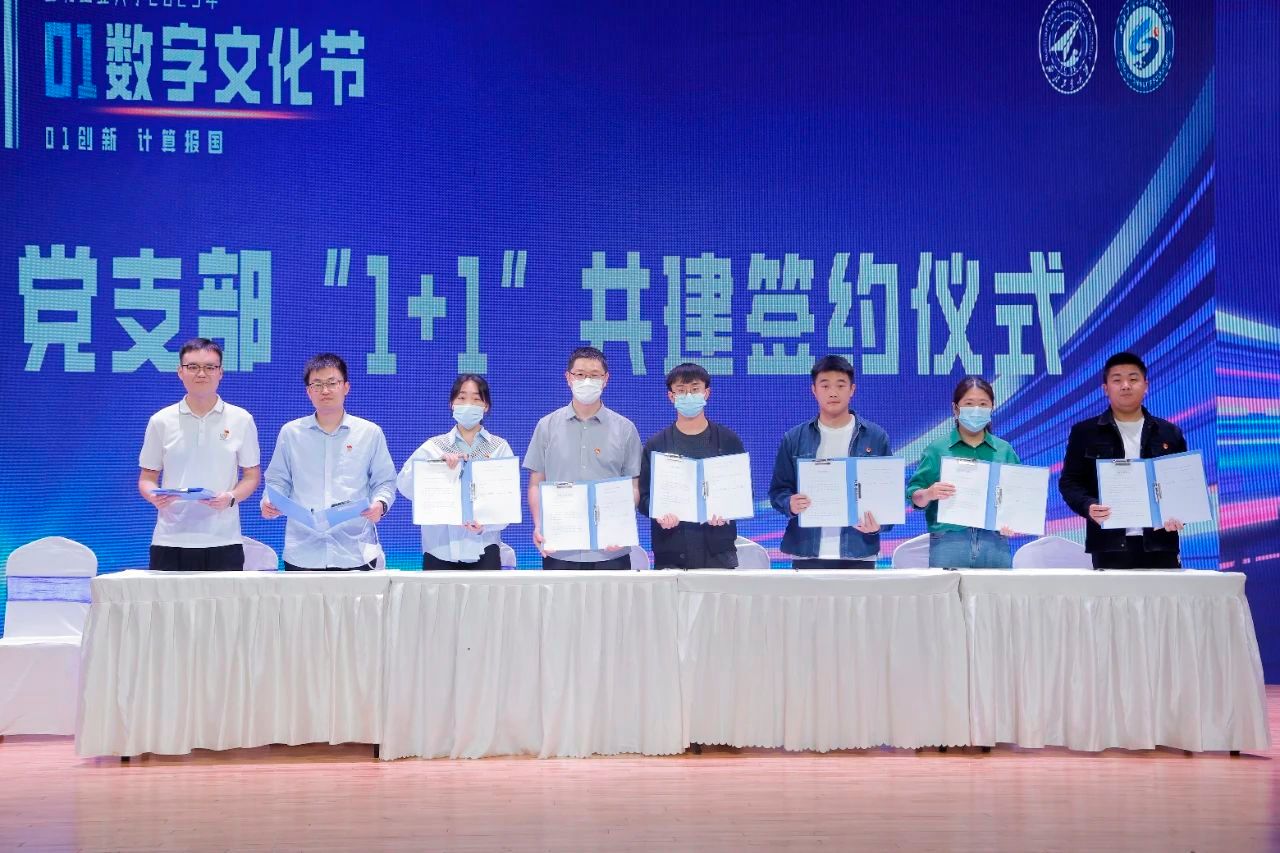 开幕式上,金年会诚信信誉至上十个研究生党支部与631所、618所、771所、华为、中兴通讯、翔腾公司等单位对口基层支部书记(室主任),进行党支部“1+1”签约共建。