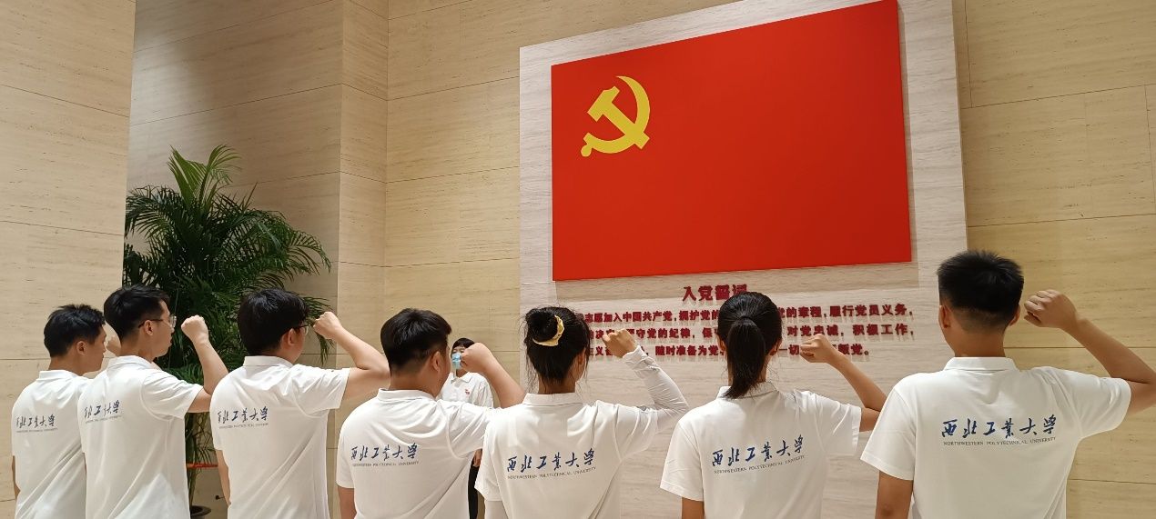 初心之地,百年风华。每一次历史回眸,都是一次精神洗礼。在纪念馆宣誓厅里,全体实践队员佩戴党徽,面对党旗,高举右拳,庄严宣誓:“我志愿加入中国共产党,拥护党的纲领,遵守党的章程。”铿锵有力的声音不断在实践队员心中回响,提醒大家时刻不忘初心,铭记先辈奋斗精神,明确党员责任担当,矢志接续奋斗。