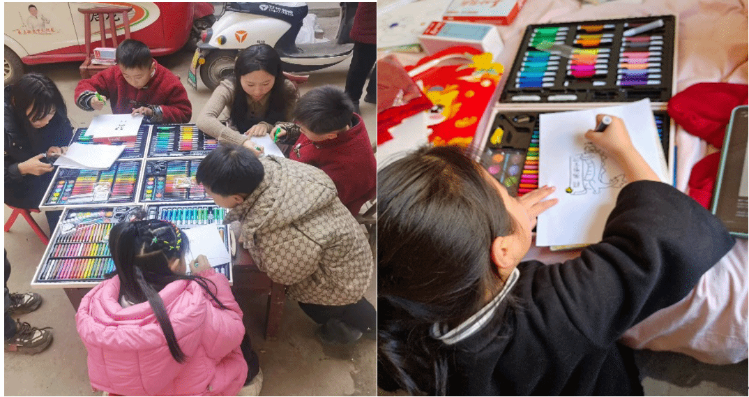 23级本科生焦乐颖深入家乡留守儿童的家庭,与她们共同绘画出一家人团圆饭过年的温馨画面。随后,焦乐颖又与留守儿童组成美好小队,一同前往一名乡村中学的教师黄老师家中,并与老师一起品悦世界名著、贴春联、贴窗花、下象棋、唱歌,诚挚感谢黄教师对乡村儿童的辛勤付出和无私奉献,一系列活动也激发了留守儿童积极向上的斗志和梦想,也让受帮扶儿童新年不孤单,拾起自信,绽放笑脸。