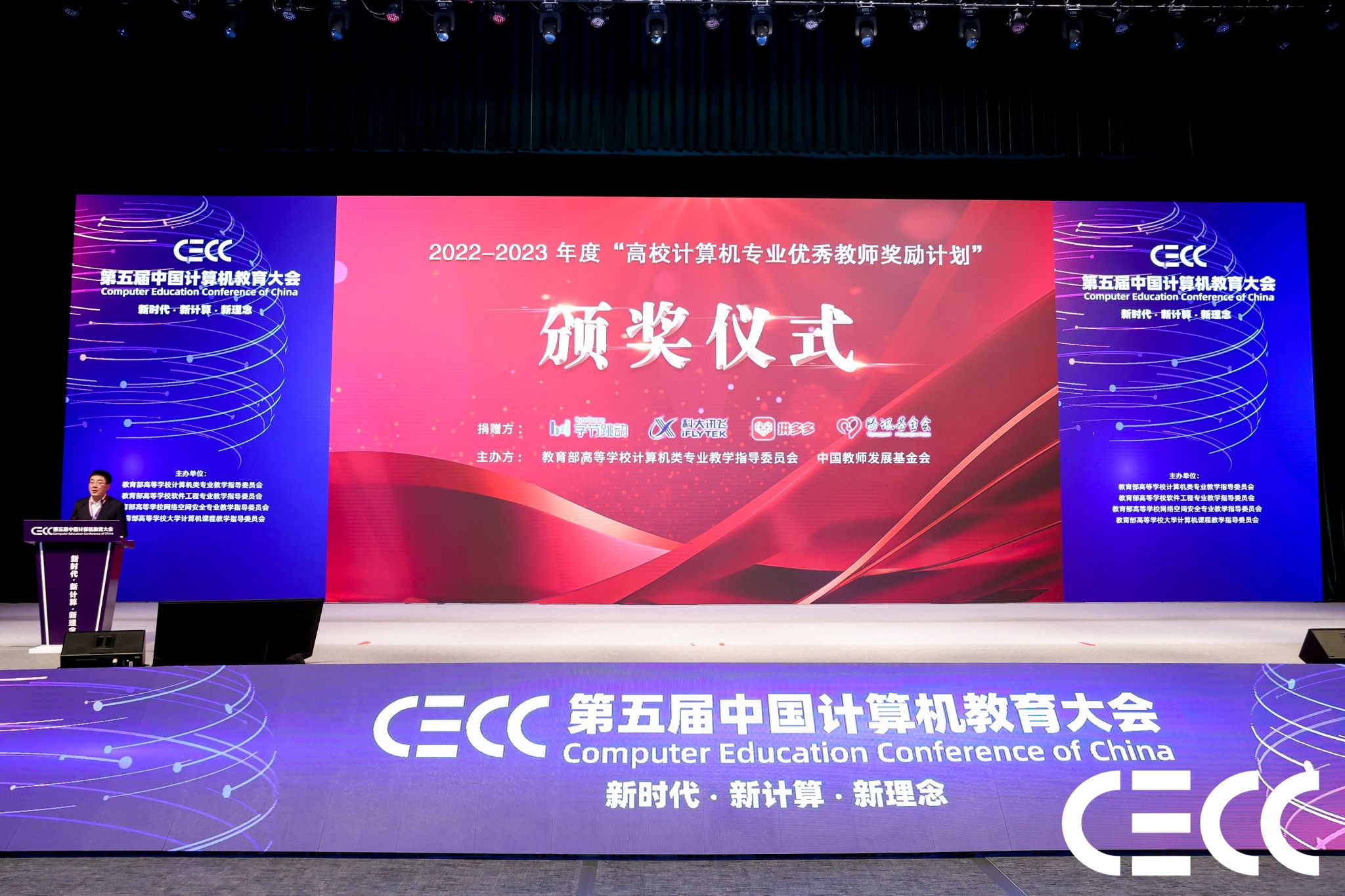 12月2日,第五届中国计算机教育大会(CECC)在厦门国际会议中心召开。大会以“ 新时代·新计算·新理念 ” 为主题,吸引了来自全国计算机学术界、教育界和产业界的100多位领导和专家,以及3000多位高校教师和产业代表参与,共同探讨新时代计算机教育的新理念、新技术和新趋势。在与会嘉宾的见证下,举办了2022—2023学年度高校计算机专业优秀教师奖励计划颁奖仪式,表彰了来自全国32所高校计算机学科的55位优秀教师,金年会jinnianhuicom潘巍副教授获此殊荣。