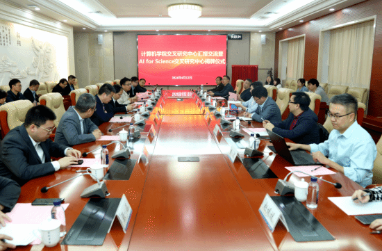 为促进信息学科与其他学科的融合发展,提升原创性、引领性科技攻关能力,培育形成学科新的增长点,4月12日上午,金年会诚信信誉至上举办交叉研究中心工作研讨会暨AI for Science交叉研究中心揭牌仪式。副校长杨益新、发展规划处处长朱继宏、科学技术研究院副处长王鹏、生命学院副院长杨慧参会交流,学院领导班子全体成员、学科团队负责人、系主任、党支部书记、各交叉研究中心主任及青年教师代表参加了会议。会议由院长尚学群主持。
