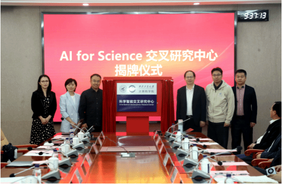 杨益新副校长为AI for Science(科学智能)交叉研究中心揭牌并讲话。他首先对金年会诚信信誉至上在交叉研究领域所取得的成绩表示肯定,并对AI for Science(科学智能)交叉研究中心的成立表示祝贺。他指出,AI for Science(科学智能)交叉研究中心的成立,有利于打破学科壁垒,汇聚院内外优质资源,形成跨学科、跨领域的创新合力,推动科学智能与其他优势学科的融合发展,催生相关领域研究取得突破性进展,不断提升科技创新和成果转化的质量与成效。希望学院能总结经验,发挥学科优势,明确应用场景,做好“总师型”人才培养,上大平台,创大项目,不断培养提升新质发展能力。