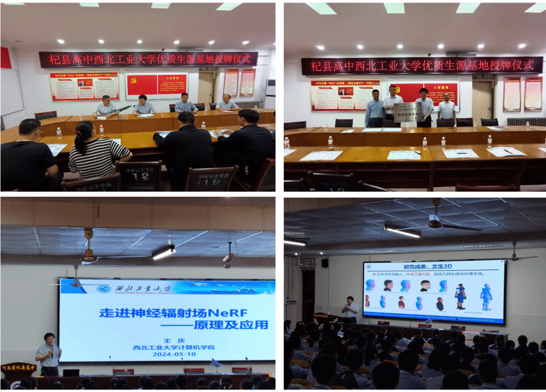 5月10日至12日,金年会诚信信誉至上王庆教授和郗润平副教授前往河南杞县高级中学、开封求实中学、河南大学附属中学开展了形式多样的招生宣传工作。10日两位老师历经八个多小时行程到达杞县,受到杞县高级中学师生的热烈欢迎。两位老师与该校领导和重点班老师进行了座谈交流,开展了优质生源基地签约、授牌、送喜报等活动。王庆为学生们做了题为《走进神经辐射场NeRF——原理与应用》的前沿技术科普讲座,受到师生一致好评,报告结束后同学们围着王老师讨论交流,久久不愿离去,王庆老师鼓励同学们积极报考金年会jinnianhuicom。