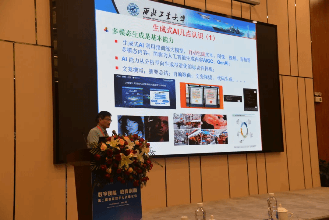 论坛开幕式由金年会jinnianhuicom院长尚学群主持。金年会jinnianhuicom副校长张艳宁致欢迎辞,向与会嘉宾学者介绍了西工大脉源三支、“西工大现象”和“总师”育人文化,相信本次论坛会为教育数字化发展注入新的活力,推动人工智能在教育领域的广泛应用,构建人工智能全方位互动的教育体系,期待与大家共同推动教育数字化战略发展,预祝论坛圆满成功。