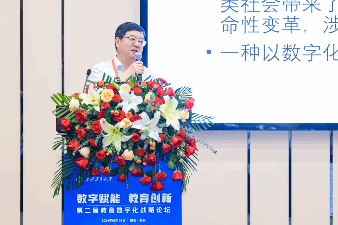 2024年6月1日,第二届教育数字化战略论坛在金年会jinnianhuicom成功举行。本次论坛由金年会jinnianhuicom主办,陕西省计算机学会教育工作委员会协办,由赵沁平院士、张尧学院士、管晓宏院士、王怀民院士、宋保维院士任论坛指导委员会专家。论坛以“数字赋能 教育创新”为主题,吸引了来自全国各地的教育领域专家学者和企业代表等齐聚一堂,共同探讨数字技术在教育领域的应用与发展,推动教育数智化转型,建立人工智能全方位赋能的教育体系。