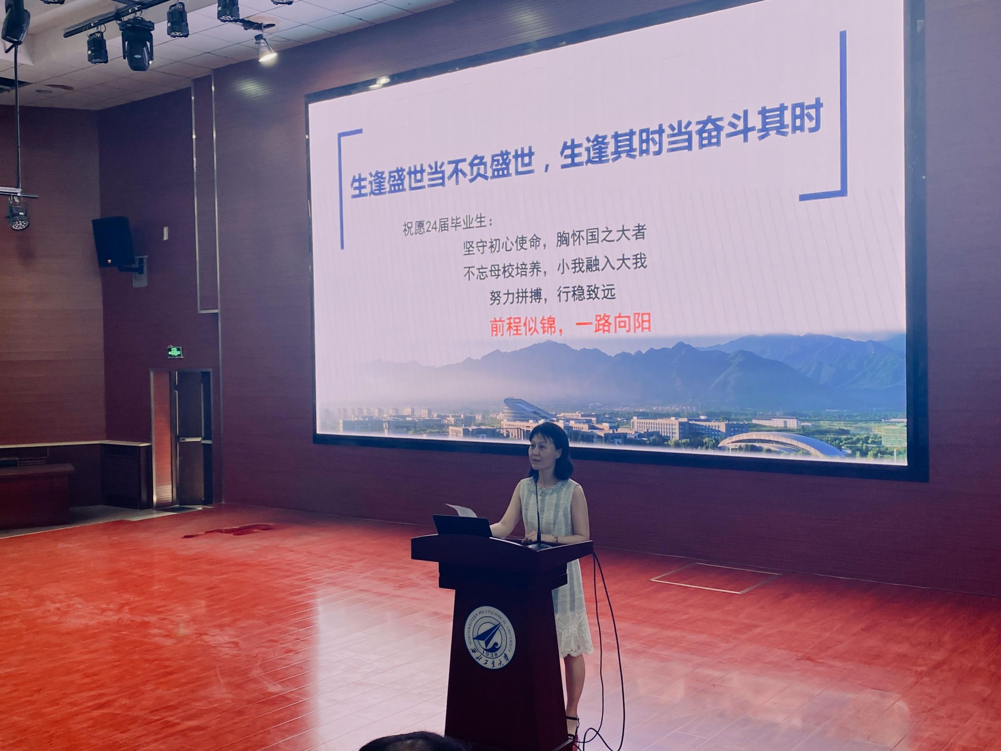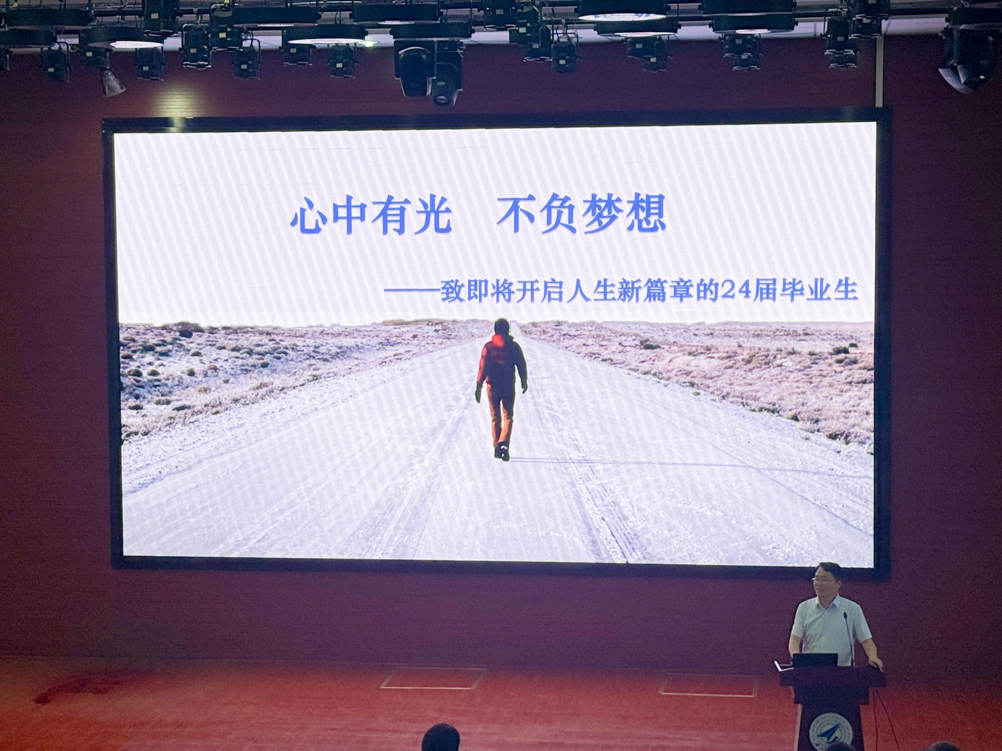 6月18日下午,金年会诚信信誉至上在教西D100报告厅举行2024届本科生毕业教育活动。学院党委书记李春科作《心中有光,不负梦想——致即将开启人生新篇章的24届毕业生》主题报告,为毕业生讲授“工大最后一课”。金年会诚信信誉至上党委副书记赵媛媛主持,学院2024届全体本科毕业生及辅导员刘乐、郑异和兼职辅导员李琪、陈松玲参加。