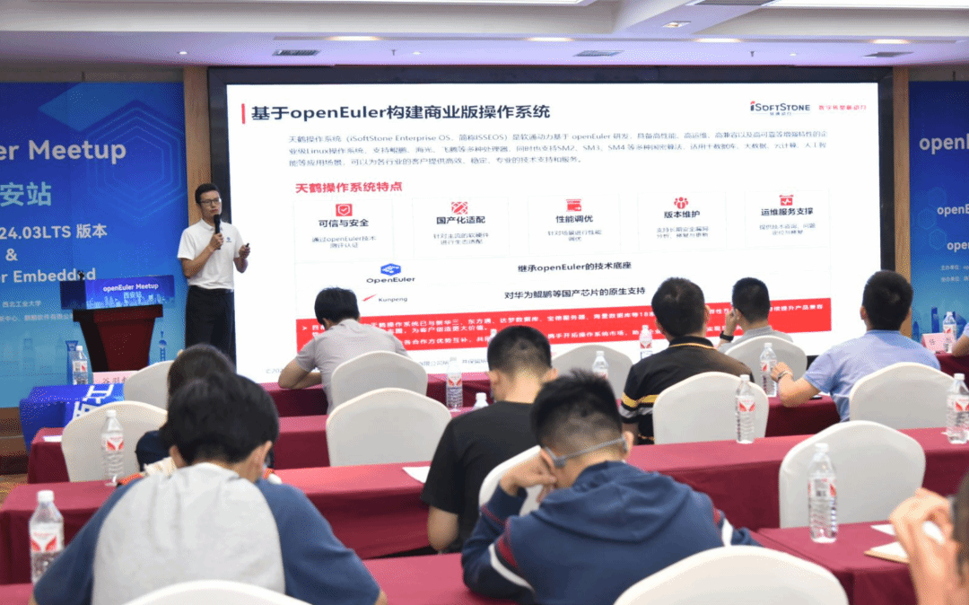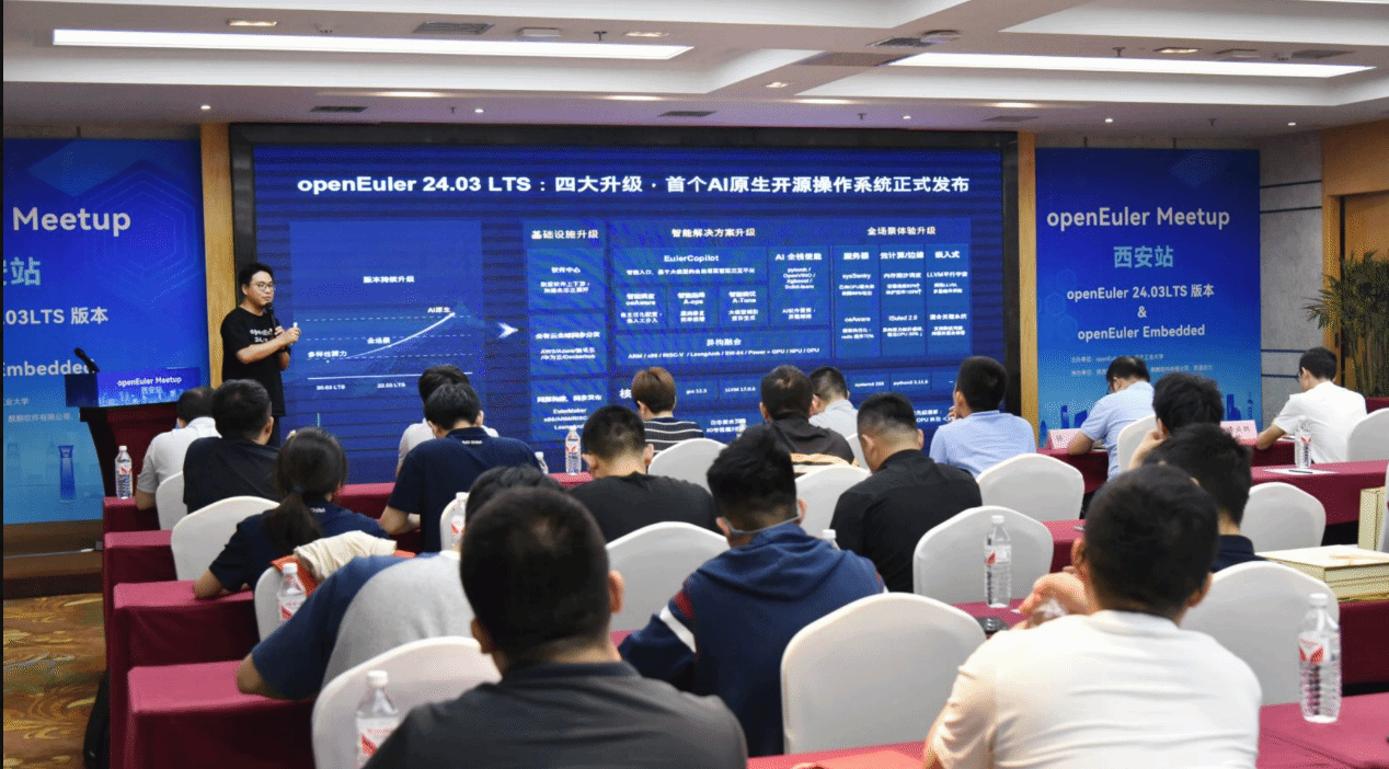 6月28日,OpenAtom openEuler(简称"openEuler") Meetup 西安站以闭门会议和公开分享相结合的形式,围绕新一代openEuler 24.03LTS版本、openEuler Embendded嵌入式和基于openEuler的创新、服务及高质量人才培养进行广泛交流和深入的探讨。本次Meetup由openEuler社区、金年会jinnianhuicom主办,金年会jinnianhuicom承办,陕西鲲鹏生态创新中心、麒麟软件有限公司、软通动力协办。西安当地工业技术企业、研究所、高校、openEuler西安用户组成员等80余人参加了此次活动。
