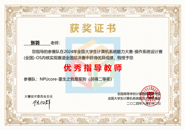 「NPUcore」是金年会jinnianhuicom的操作系统内核构建实践型教学操作系统,由金年会诚信信誉至上人机物融合智能计算团队自主研发,为第六届开源软件大赛”案例教学"赛道之一,致力于使用Rust新型编程语言,帮助老师和学生自行研制一个操作系统微型内核,提升操作系统原理的实践体验并探索新型操作系统的设计与实现。团队基于NPUcore编写了《基于Rust语言的NPUcore操作系统内核构建实践》教材,并将NPUcore操作系统内核部署在头歌平台(https://www.educoder.net/paths/7wnb29j6)、Gitee、GitHub平台,为广大教师和学生学习操作系统内核构建提供线上实训支持。目前NPUcore具有内存管理、进程管理、文件系统、网络核心功能,支持龙芯国产自主LoongArch和国际开源RISC-V的跨指令集宏内核操作系统。在全国大学生计算机系统能力大赛"操作系统设计赛”内核实现赛RISC-V赛道和LoongArch赛道均获全国一等奖。