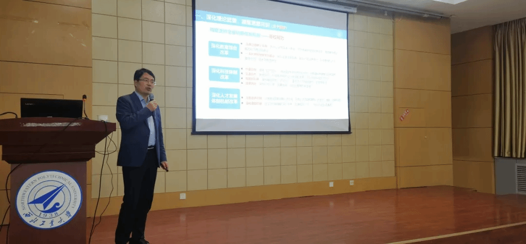 李春科主要围绕本次党代会的时代背景、过去五年学校工作、学校中长期远景目标及核心内涵、未来五年主要任务和学院如何落实推动等进行了深入详细的宣讲,宣贯中他结合大量的案例和详实的数据,生动形象地展示了学校及学院近年来在人才培养、科学研究、师资队伍等方面取得的显著成就和美好的未来,引起师生的广泛共鸣。最后,他鼓励大家不忘初心、不负使命,永远在一线、永远在状态、永远在前列,为党育英才、为国铸重剑,在走出“一条西部国防军工高校创建中国特色一流大学的新路”上不断求索创新。