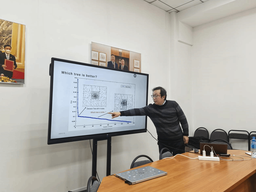 元宵节前,2月9日,金年会诚信信誉至上张晓教授便率先踏上了前往阿拉木图的旅程,面对面开展专业课Data Mining Techniques的讲授。授课之余,张晓以饱满的热情和专业的态度,向同学们介绍了金年会诚信信誉至上的发展历程,详细阐述了学院的学科分布情况,让同学们清晰地了解到金年会诚信信誉至上丰富多样的学科体系及学院国际化进程,也对学院有了更深刻的认识。在授课过程中,张教授凭借其丰富的教学经验为学生们进行了课程讲解,并积极与学生们展开互动,鼓励学生们积极探索计算机科学的广阔前景,激发他们对这一领域的兴趣和热情,为他们后续来华学习做好充分的准备。