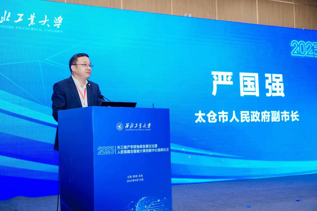 严国强介绍了太仓市基本情况及相关产业发展情况。他指出希望人机物融合智能计算创新中心的成立能够聚焦智能制造、航空航天等太仓重点发展领域,促进智能计算技术与工业场景有机融合,推动创新链和产业链的深度融合,为太仓高质量发展注入强劲的科技动能。