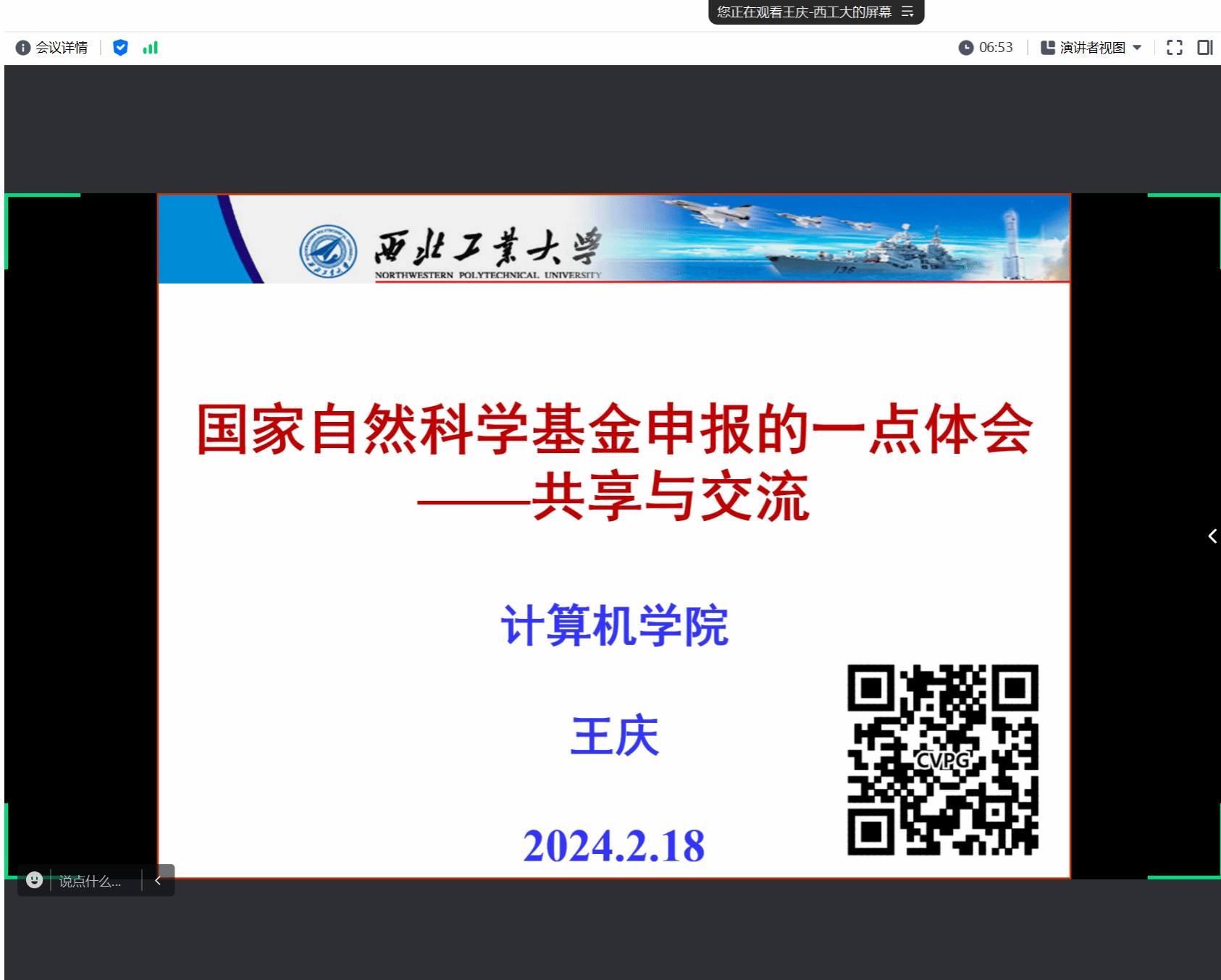 史豪斌副院长再次感谢王庆教授精彩的辅导报告,并强调申请教师要抓紧最后一个月的时间认真打磨,注意每一个细节,做到精益求精,提高基金申报书质量。